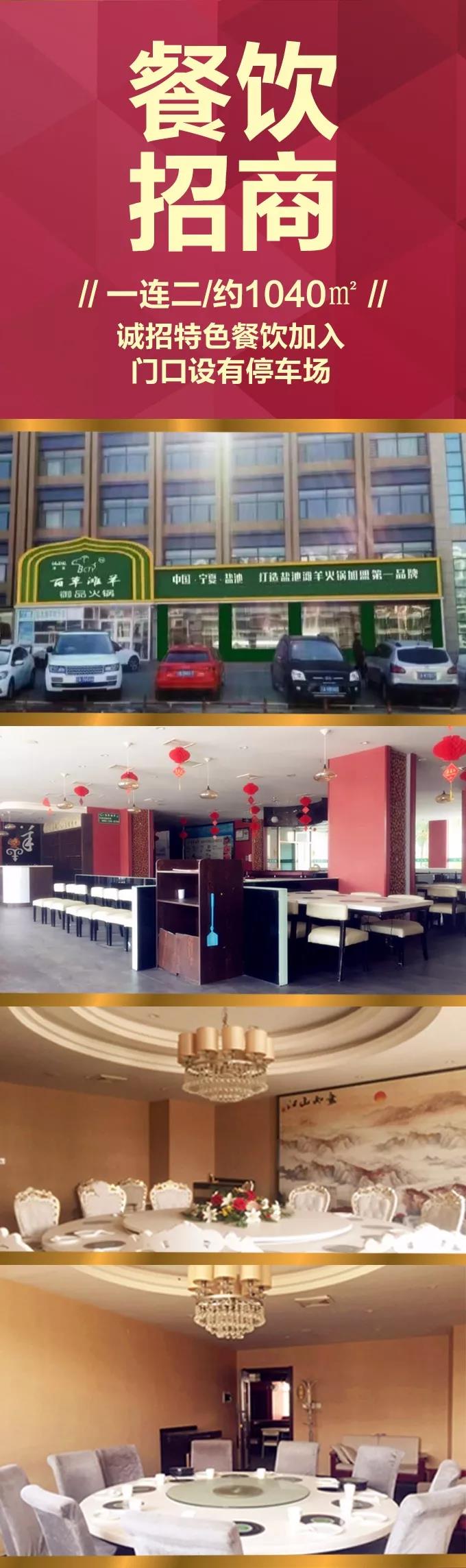 位于銀(yin)川市(shi)金鳳區良(liang)田新(xin)華(hua)百貨大賣場向(xiang)南(nan)200米(mi),現有約面積1040平方米(mi)臨街一連二特色餐飲區對(dui)外出(chu)租。精裝修全配套,成熟社(she)區環伺(si),交通便利(li),商(shang)機無限。 咨(zi)詢電話:0951-5017600/5051121。