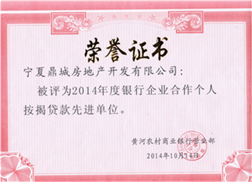 2014年度銀行企業個人按揭貸款先進單位(黃河農村商業銀行)