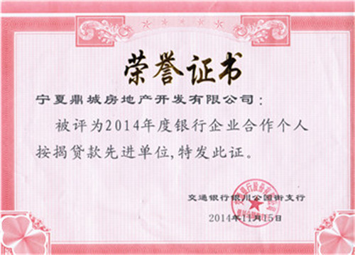 2014年度銀行企業個人按揭貸款先進單位(交通銀行)