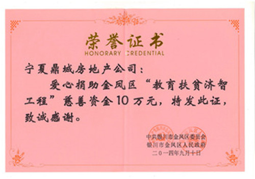 2014年向金鳳區“教育扶貧濟智工程”慈善捐款10萬元