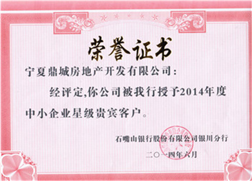 石嘴山銀行2014年度中小企業星級貴賓客戶